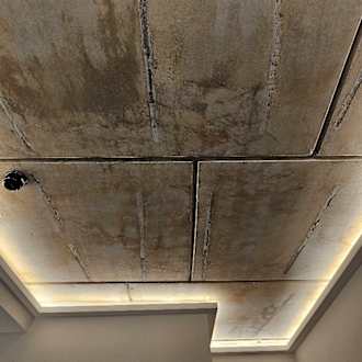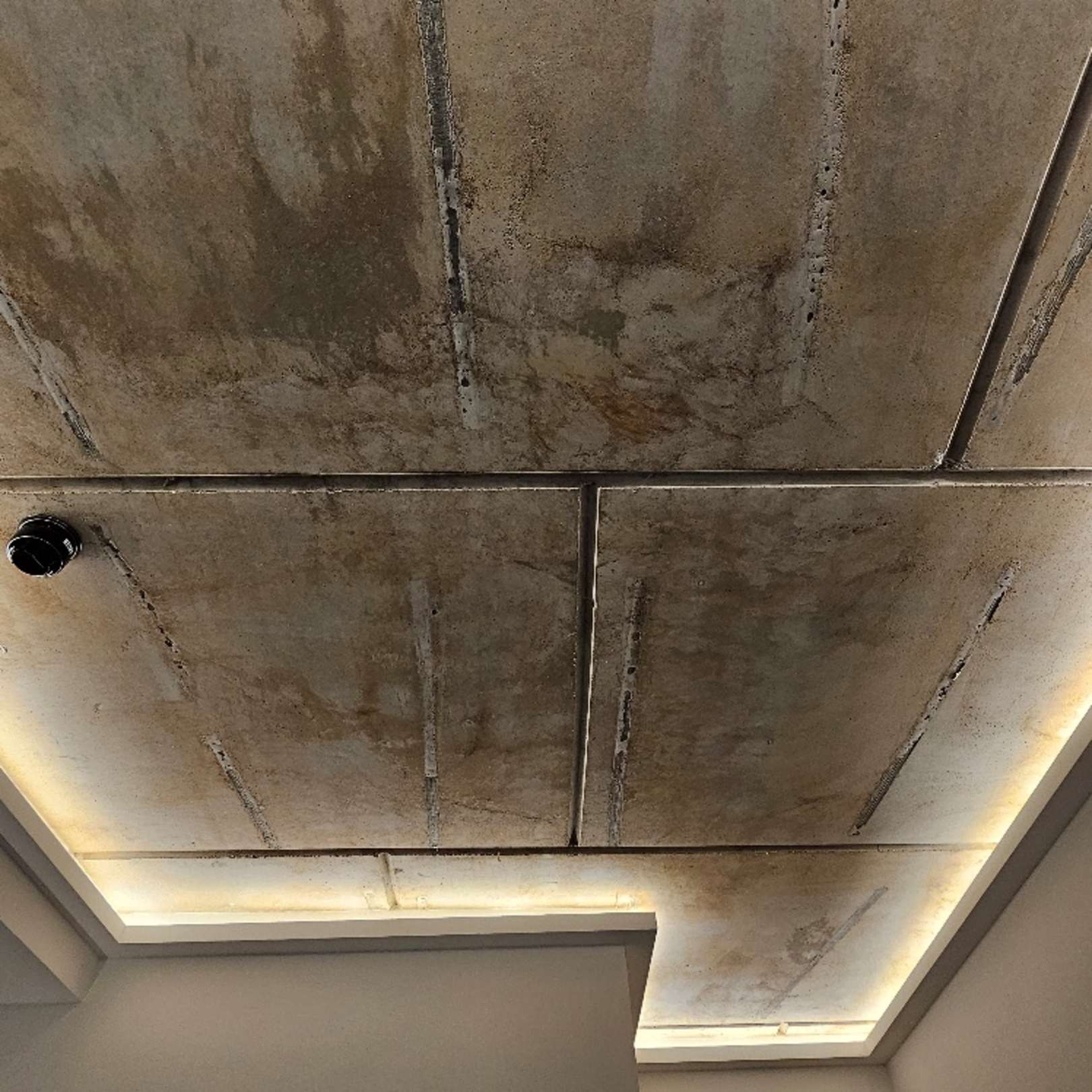 Decke des Zimmers. Entweder nicht fertig oder gewollter Lagerhallen-Look.