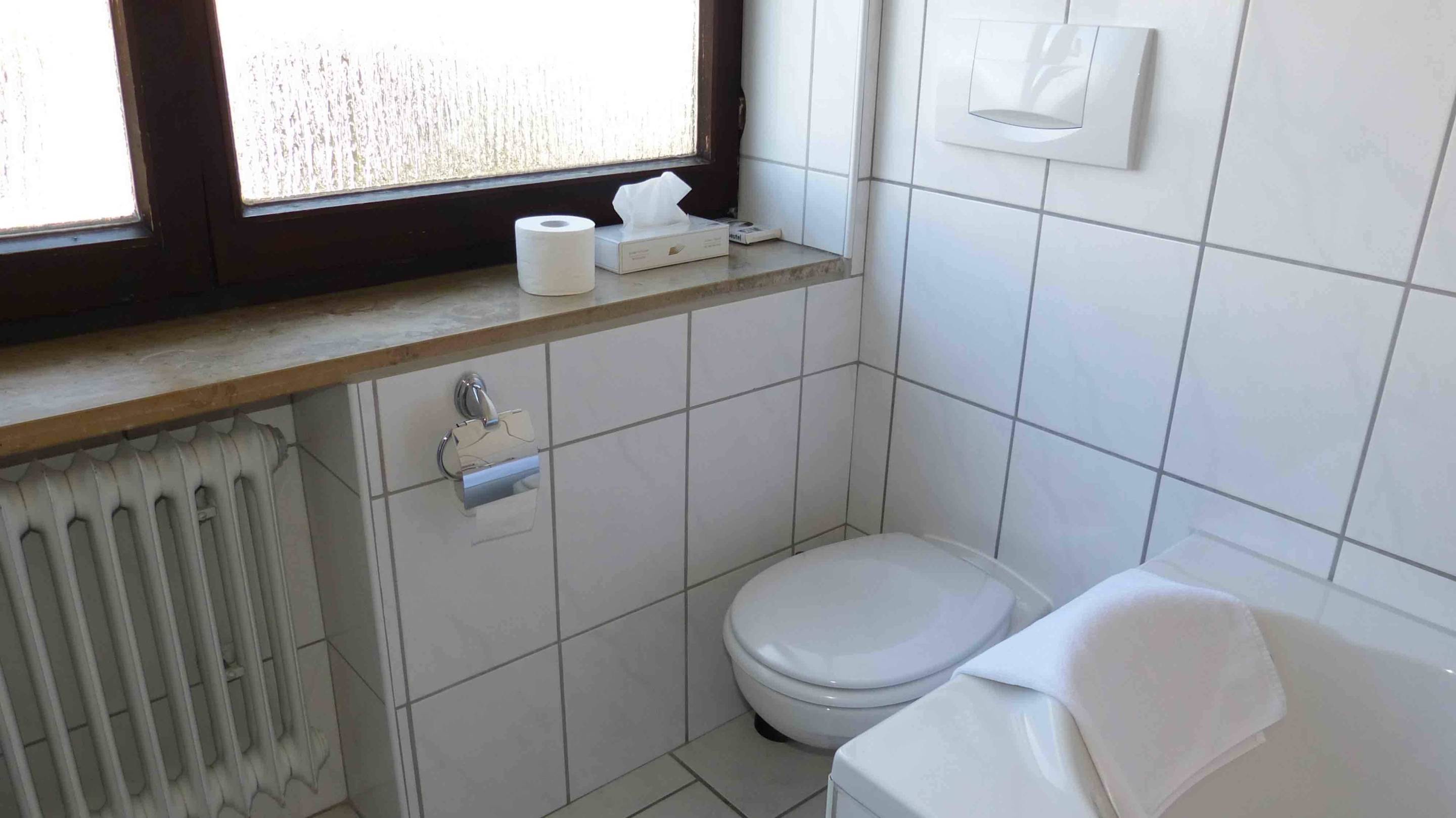 Toilette hinter der Wanne (Deluxe-Zimmer)