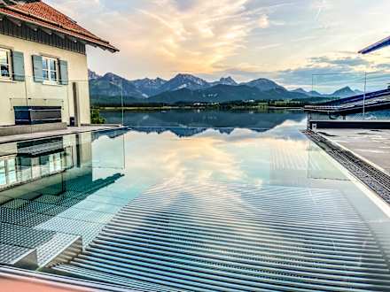 Der Infinity-Pool mit wunderschönen Blick auf den Hopfensee