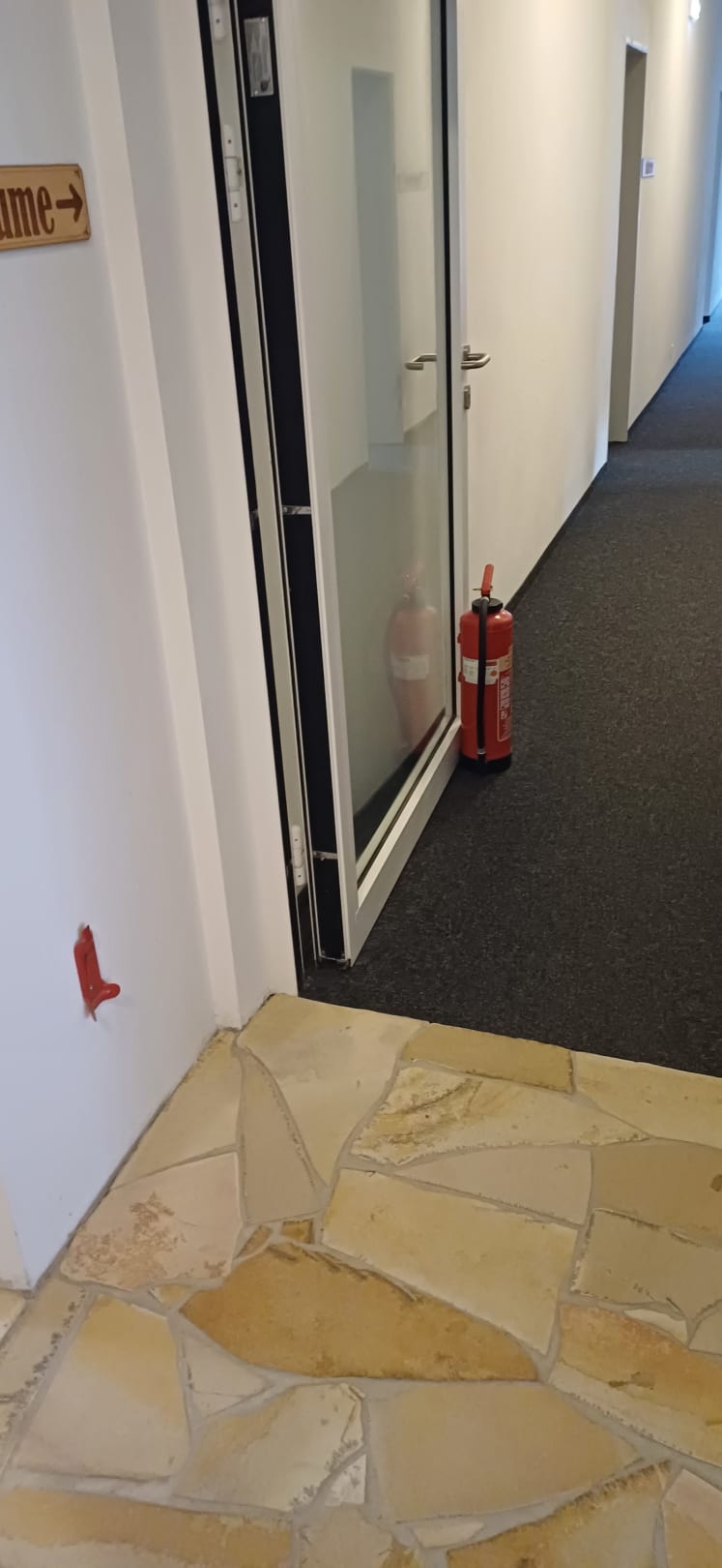 Brandschutztür mit Feuerlöscher blockiert