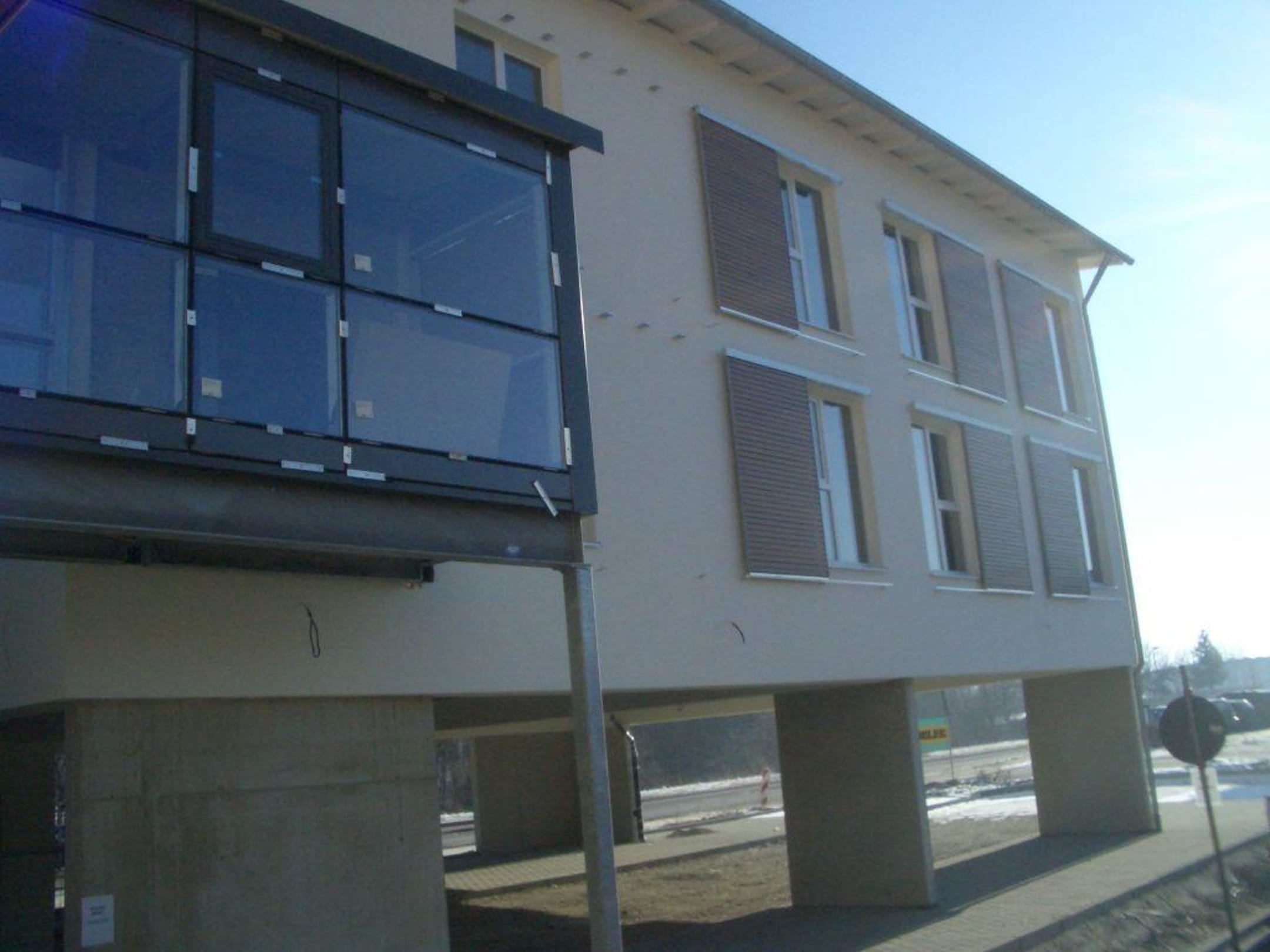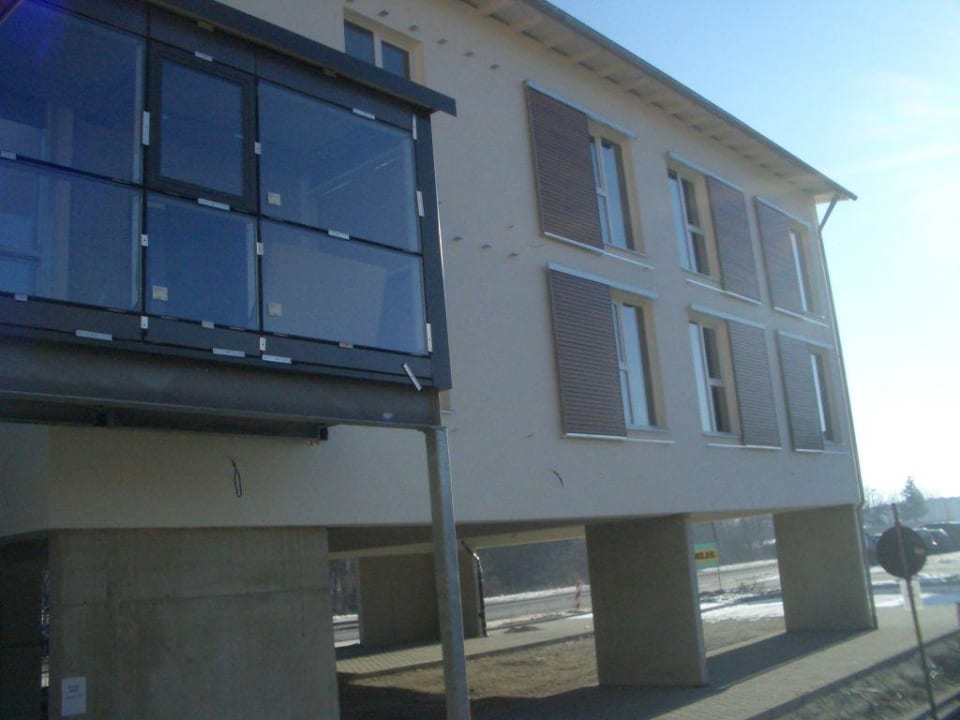 Blick auf den Anbau vom Hoteleingang aus