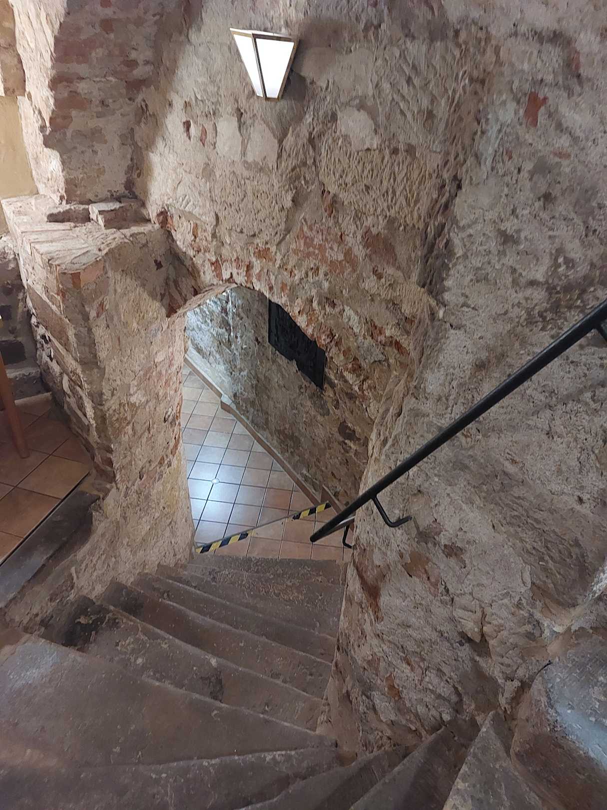 Ein historisches Haus, der Weg zum WC in der Gaststätte