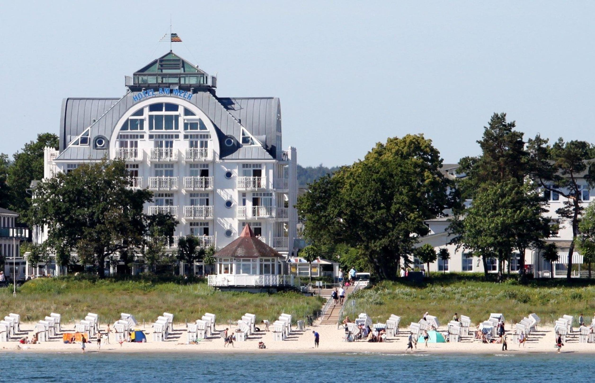 Blick vom Meer auf das Hotel