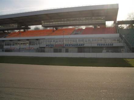 Get the sound! Having breakfast while others are doing their practise. Hotel Motodroms "backview, which is in fact a first class view to the racetrack along the starting grid and the pitlane.
