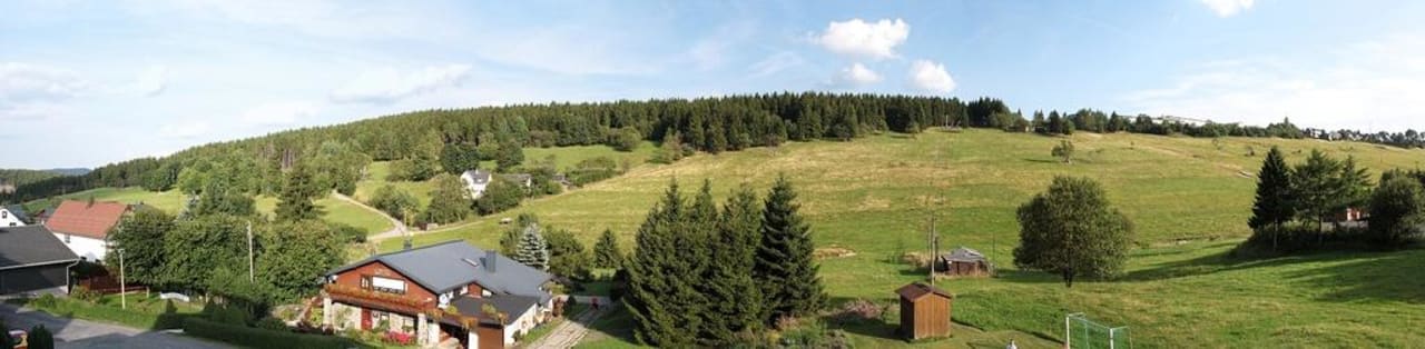 Panorama - ZimmeraussichtBlick vom Balkon auf die schöne Umgebung. Oberhalb des Berges verläuft der Panoramarundweg des Ortes.