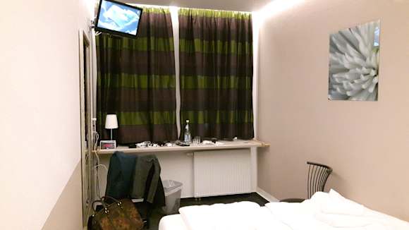 Breite Fensterbretter ersetzen einen Tisch. Kleiner Fernseher oben.
