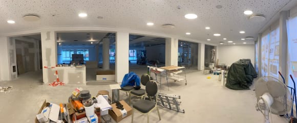 Gastrogrossbaustelle im Restaurant und Rezeption-wo essen also die Gäste die nicht vor gewarnt werden-im Zelt