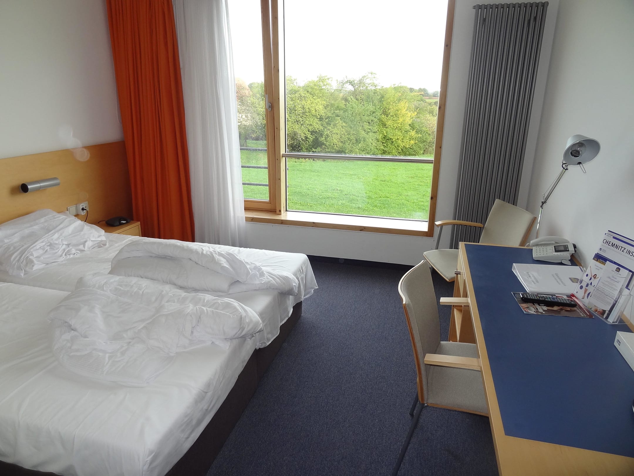 Bett, Tisch, Telefon, Schreibtisch