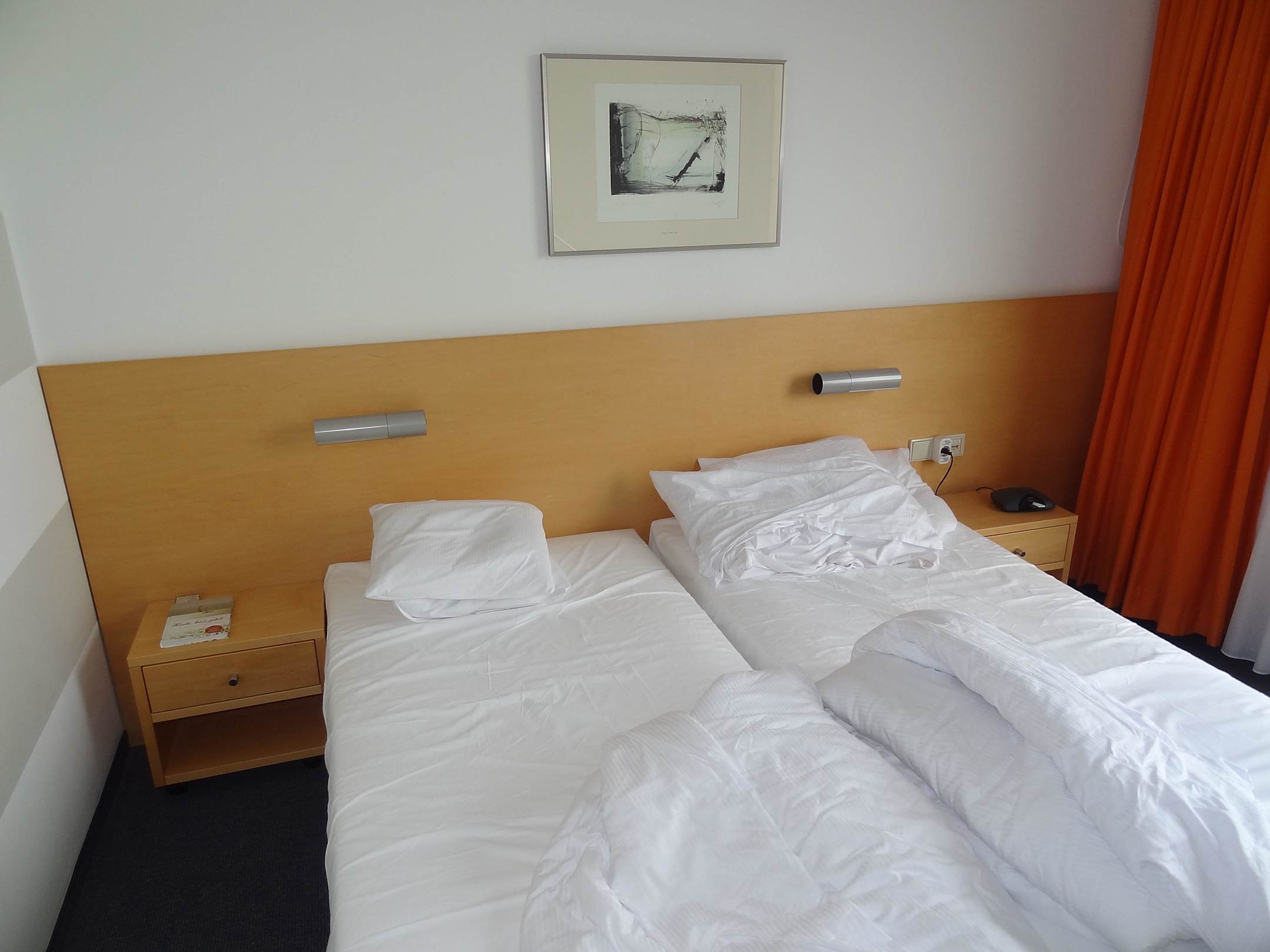 Die 2 Betten und die 2 Röhren-Bettlampen