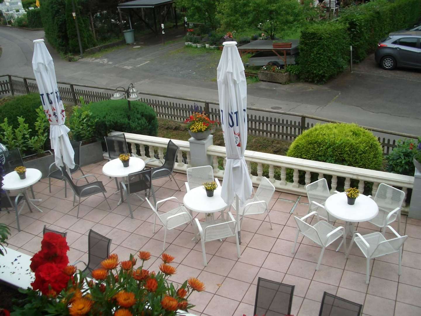 Ausblick auf die Terrasse vom Balkon