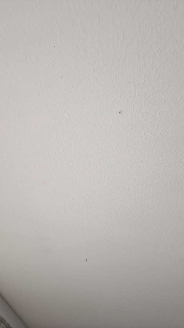 Spinnweben und Insekten an Decke.