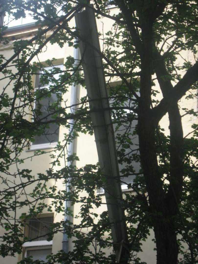 Altes Rollo im Baum vor dem Fenster