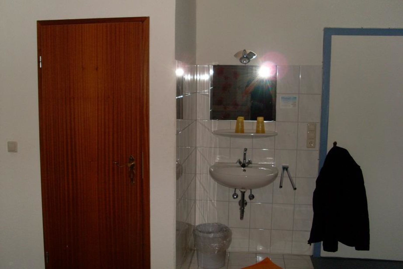 Die Waschecke und die Tür zu Bad (l) und Flur (r)