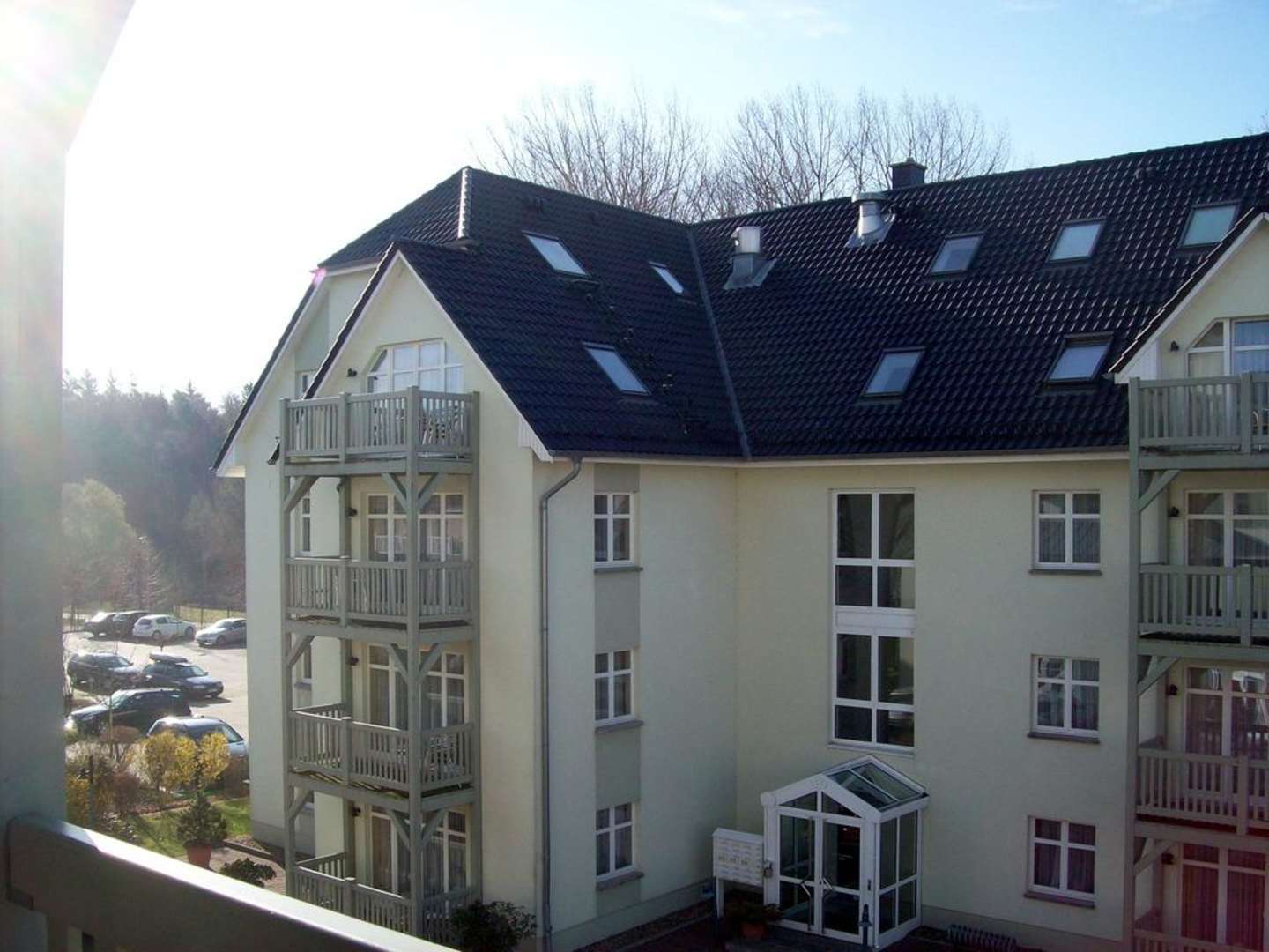 Haus B vom haupthaus A fotografiert. die Häuser liegen nah beieinander.