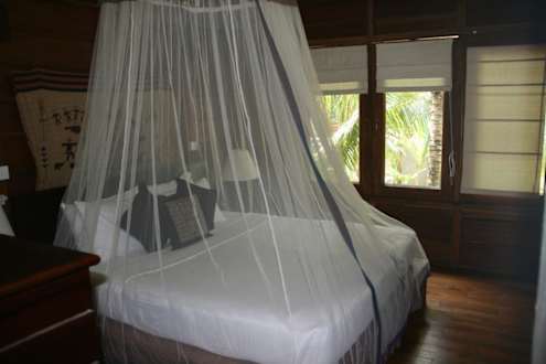 Bett mit Moskitonetz