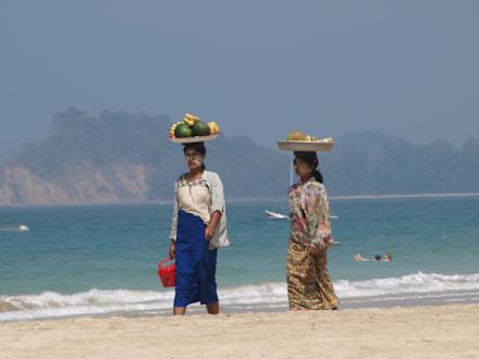 die Mädels laufen dort entlang und verkaufen Obst