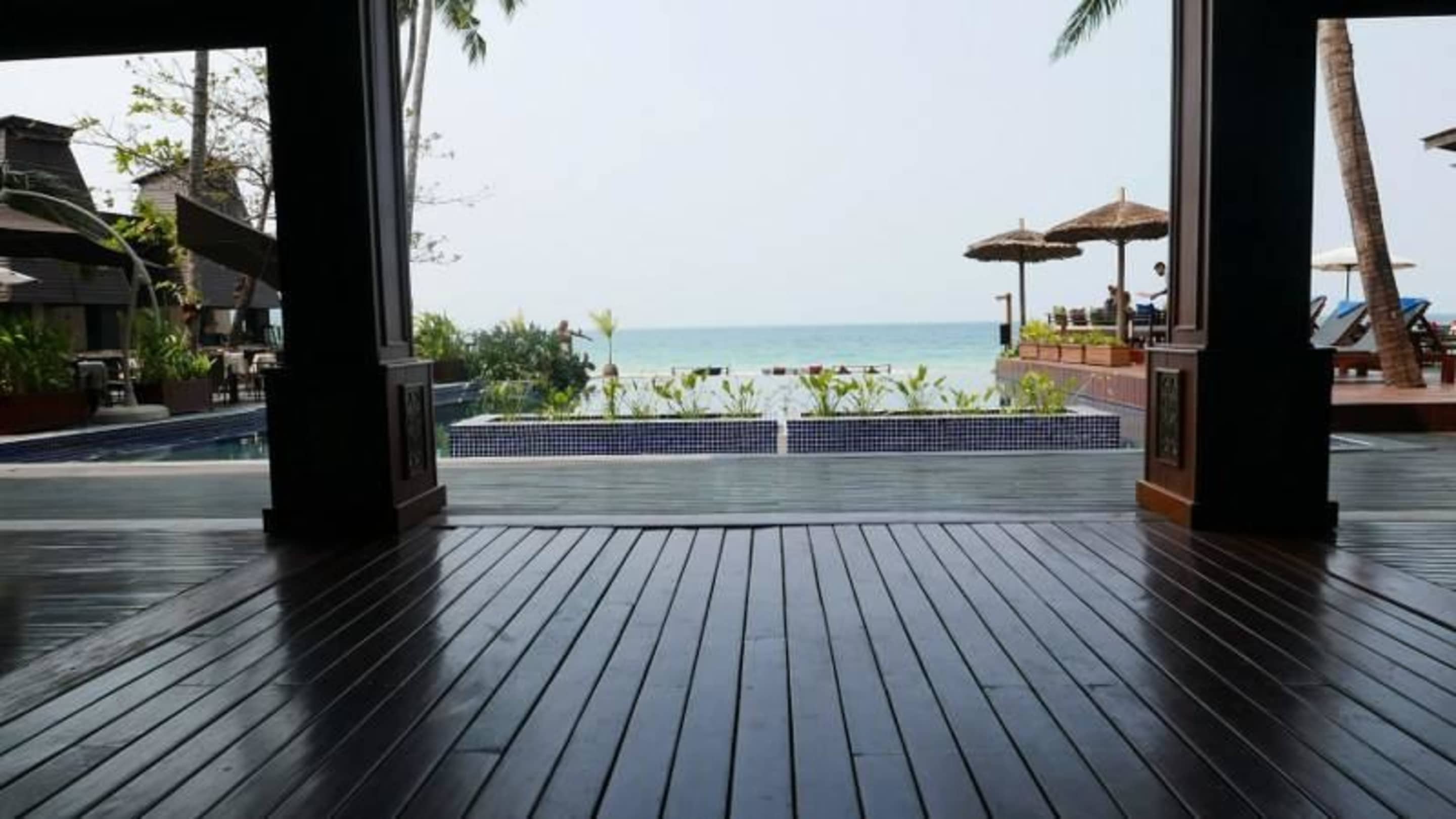 Blick vom Pool aufs Meer