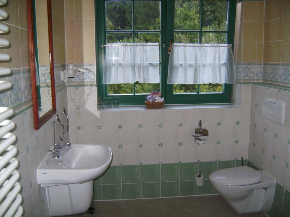 Bad mit Waschbecken, WC, Heizung