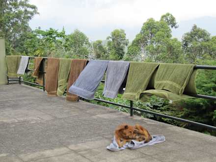 Hunde auf frisch gewaschenen Handtüchern