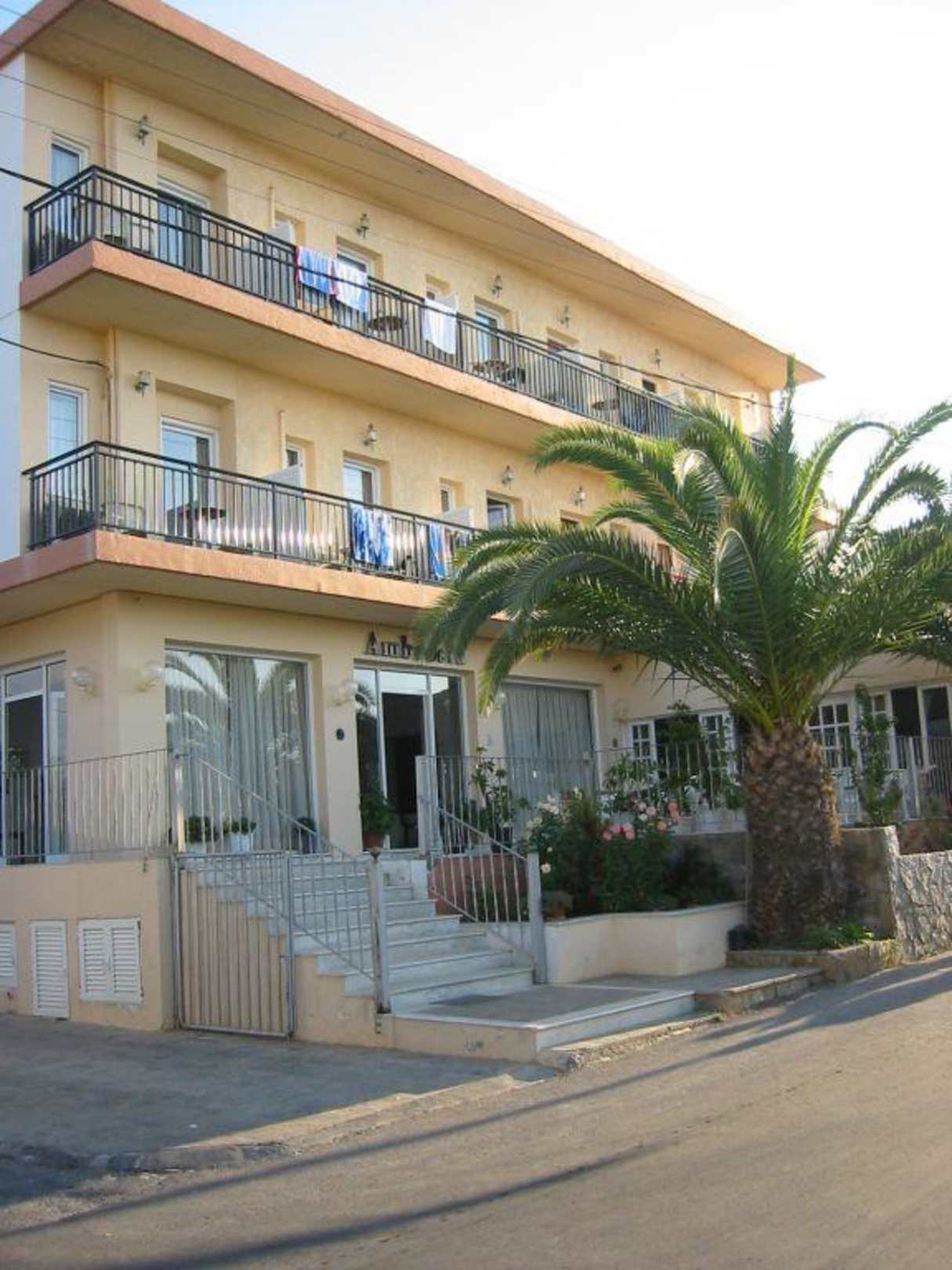 Vorderseite des Ambrosia Hotels in Stalis