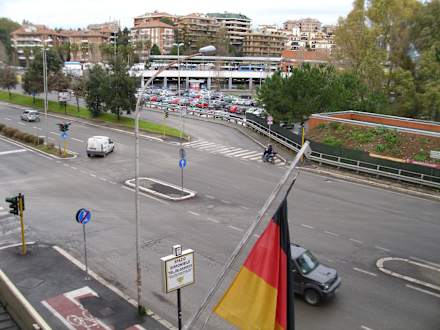 Blick vom Balkon des Zimmers 209 zum Bus- und U-Bahnhof "Laurentina" (Endstation der Metro B)