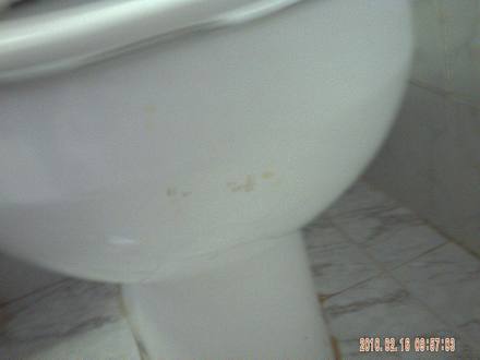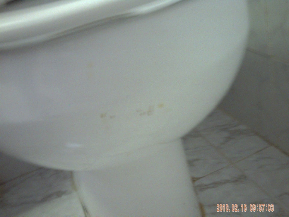 Wohl daneben gezieltUrinflecken lassen erkennen, dass zuletzt ein Mann im Zimmer war und nicht sauber gemacht wurde (Zimmer 607)