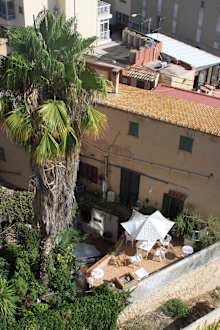 Ausblick von der Terrasse auf umliegende Gärten