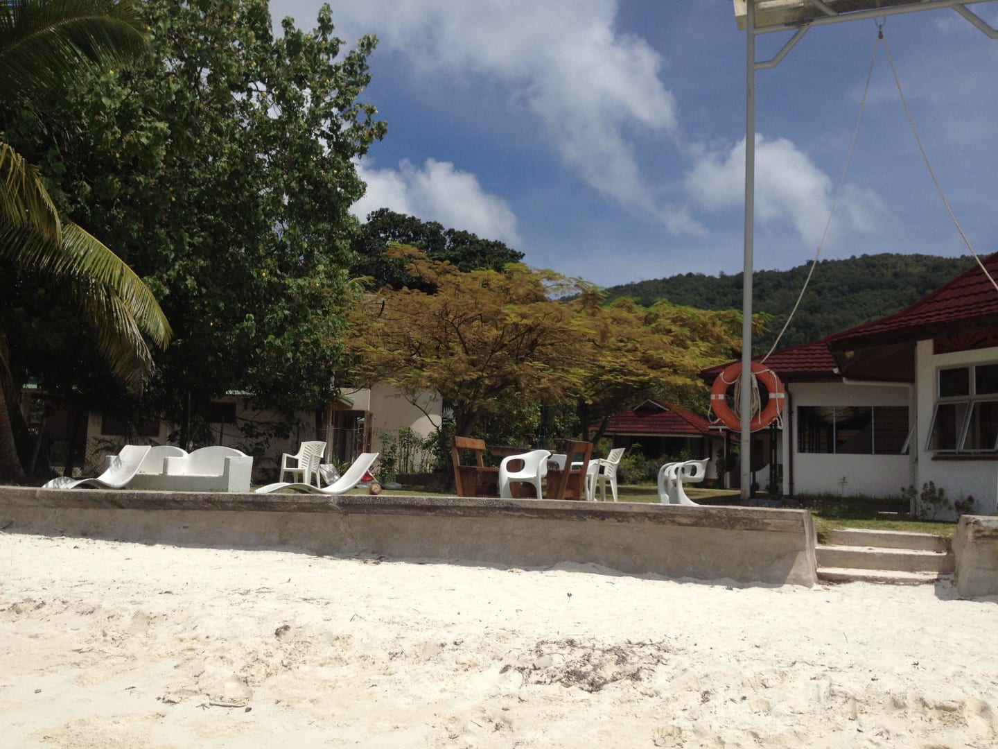 Blick vom Strand auf das Anwesen Amitie