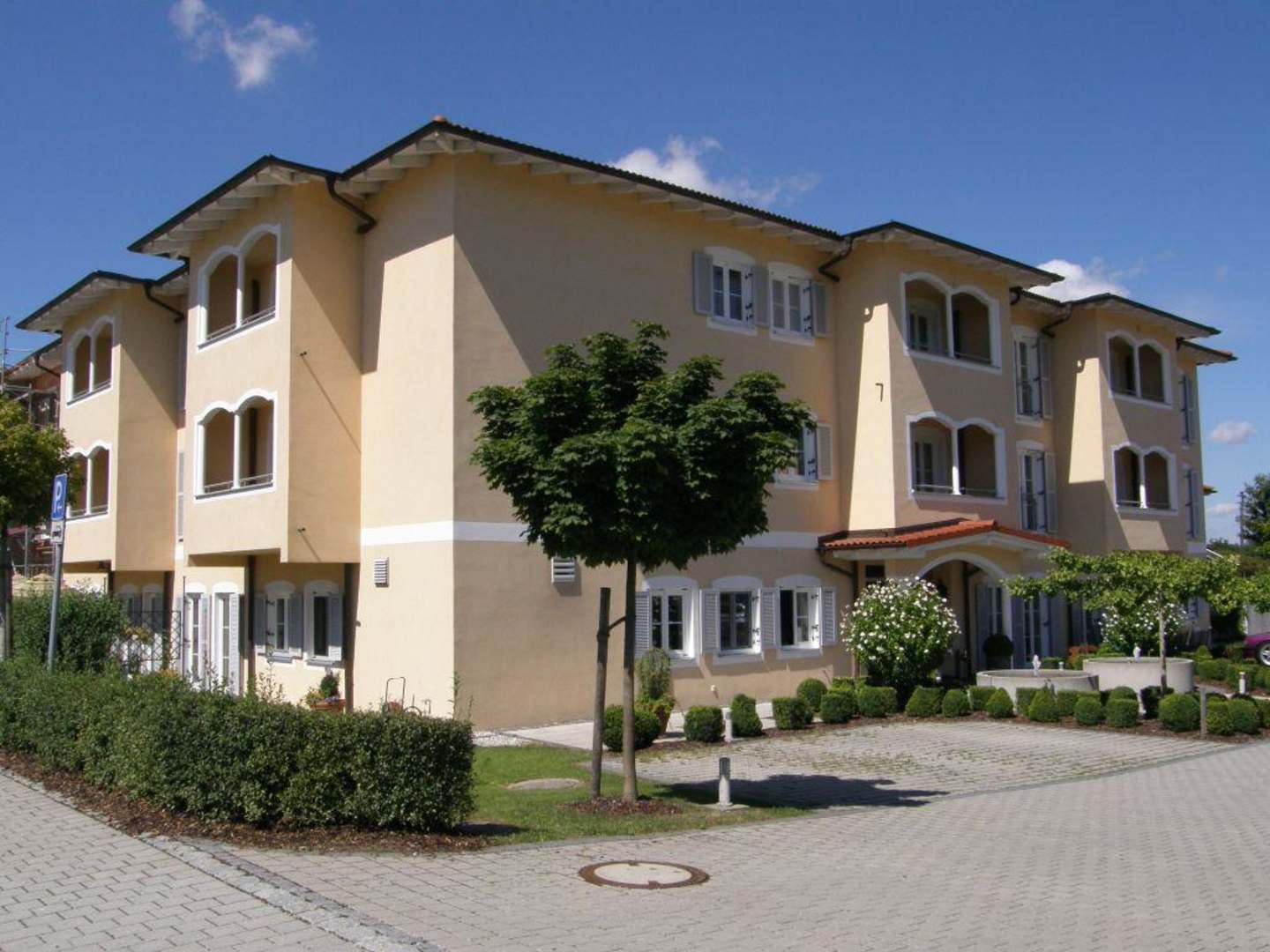 Hotelgebäude mit Parkplatz