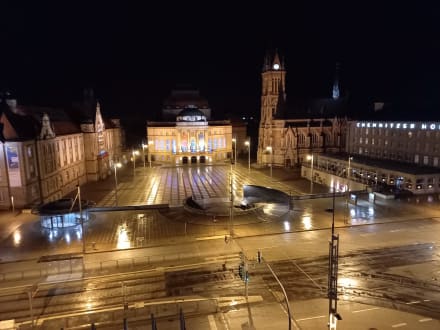 Blick aus dem Zimmer auf den Theaterplatz gegenüber.