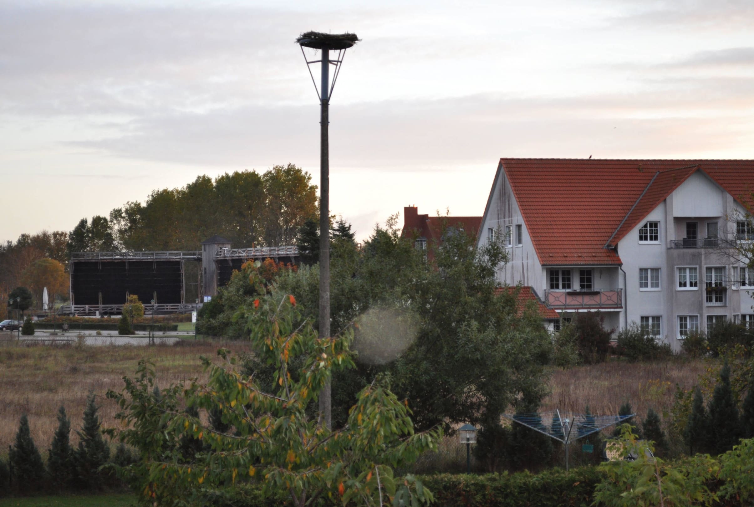 In einiger Entfernung ist das Gradierwerk zu sehen
