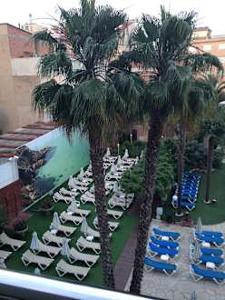 Liegen beim Pool vom Balkon aus betrachtet