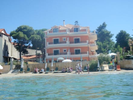 Das Hotel vom Meer aus gesehen.