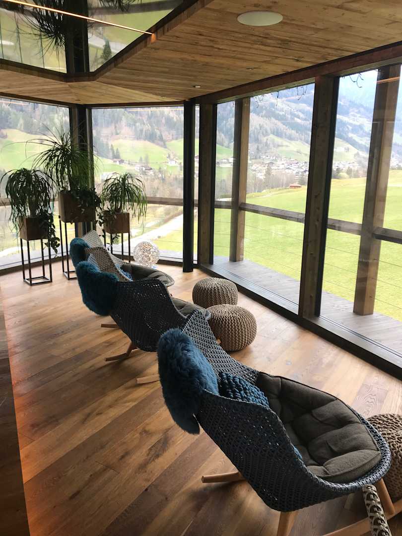 Ruheraum im Fitnesstower mit fantastischem Ausblick ins Passeiertal