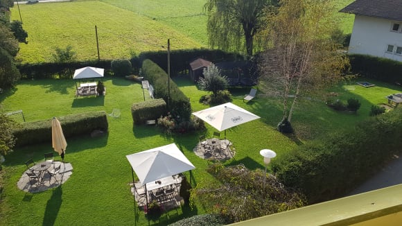 Ausblick von meinem Zimmer - linker Hoteltrakt, zentral gelegen.