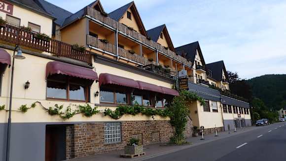 Blick von der Mosel zum Hotel