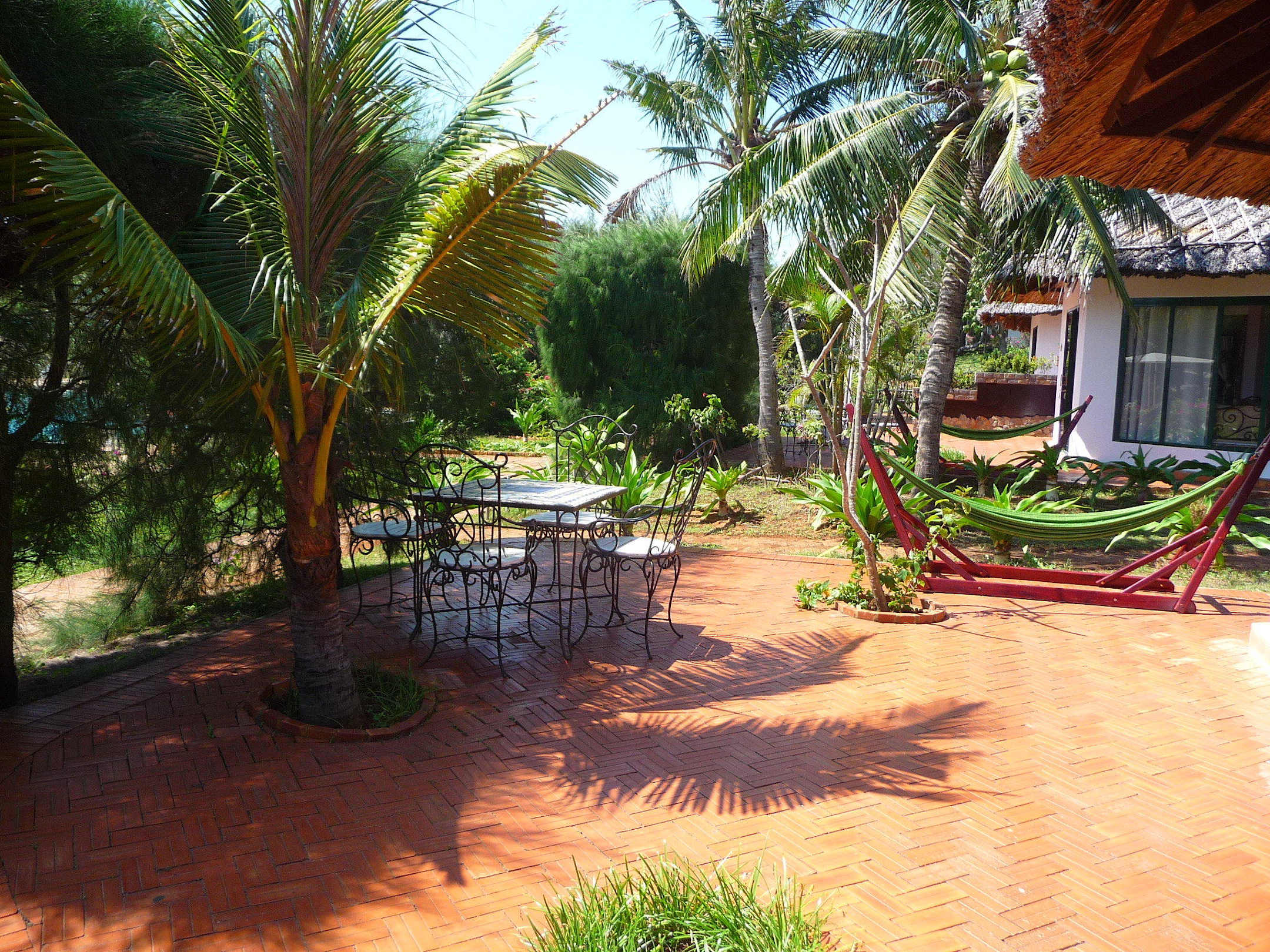 Auf jeder Terrasse gab es eine Hängematte und einen Tisch mit vier Stühlen. So konnte man auch am Abend noch sein Bier draußen trinken.