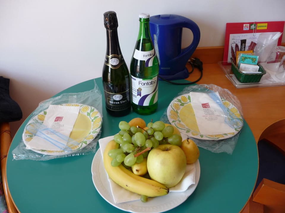 Begrüßungsobst und Prosecco