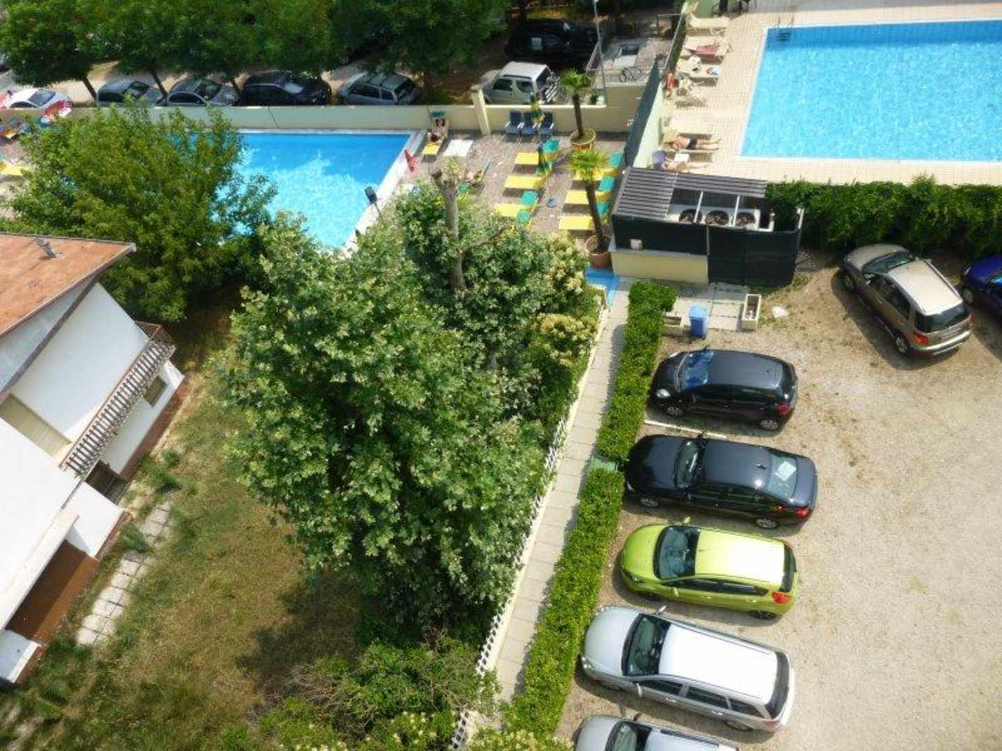 Blick vom Balkon zum Pool