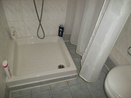 Das Bad hat seine besten Jahre hinter sich, der Duschvorhang war viel zu kurz und die Duschwanne viel zu klein, so dass das ganze Bad nach dem Duschen unter Wasser stand.