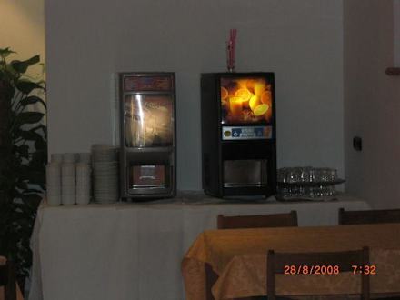 Kaffeeautomaten und Saftautomaten zum Frühstücksbuffet
