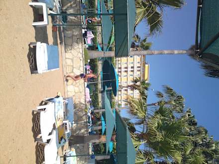 Blick vom Strand aufs Hotel