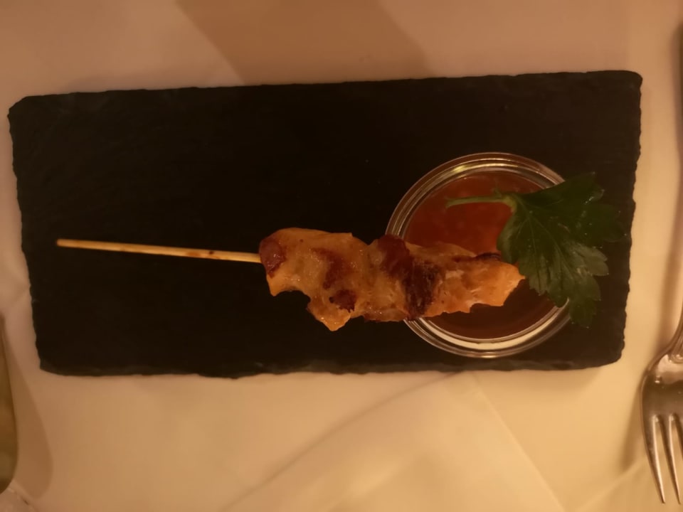 Vorspeise: Hähnchen-Sate Spieß mit süß scharfer Soße