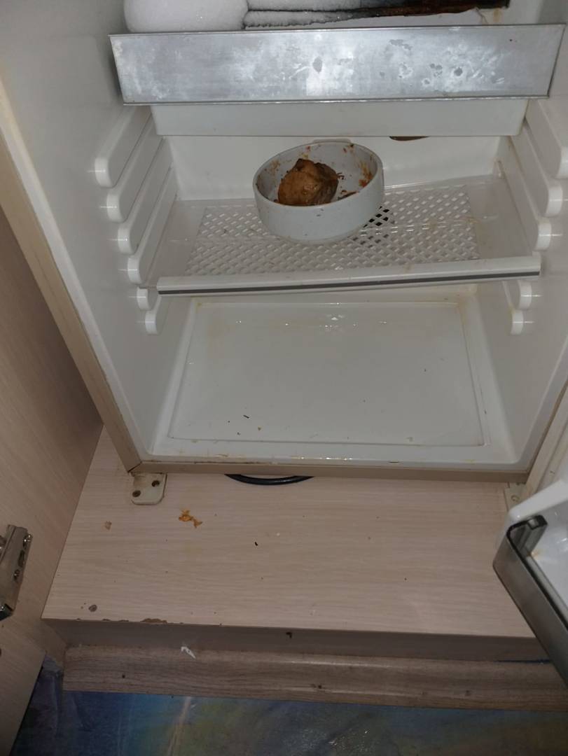 So wurde der Kühlschrank auf unser Zimmer hinterlassen