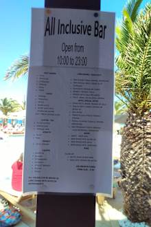Getränkekarte der All ink Angebote...