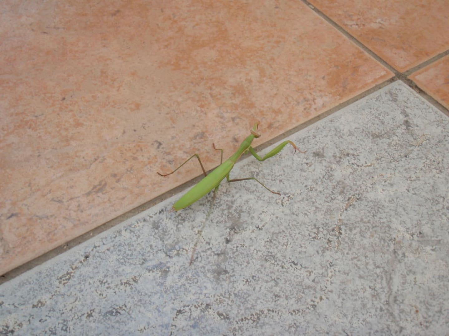 Gottesanbeterin... im offenen Treppenhaus. Wir haben sie natürlich gerettet und in einen Busch gesetzt.