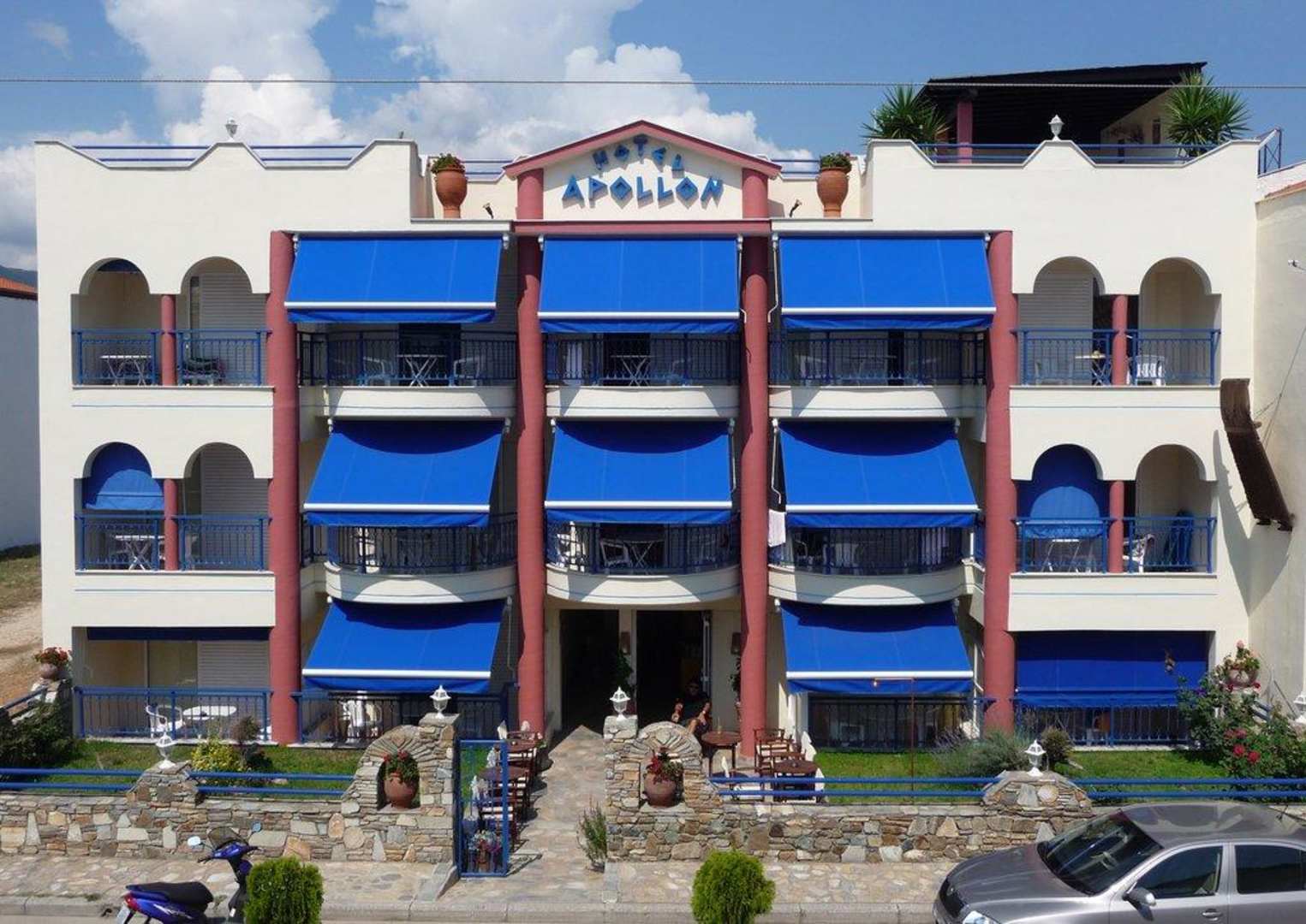 Hotel Apollon im "neuen Gewand"Das kleine aber feine Hotel wird von den Betreibern hervorragend in Schuss gehalten und laufend verbessert. Zur neuen Saison wurden zum Beispiel der Außenanstrich erneuert und die vorderen Zimmer mit Markisen auf den Balkonen ausgerüstet.