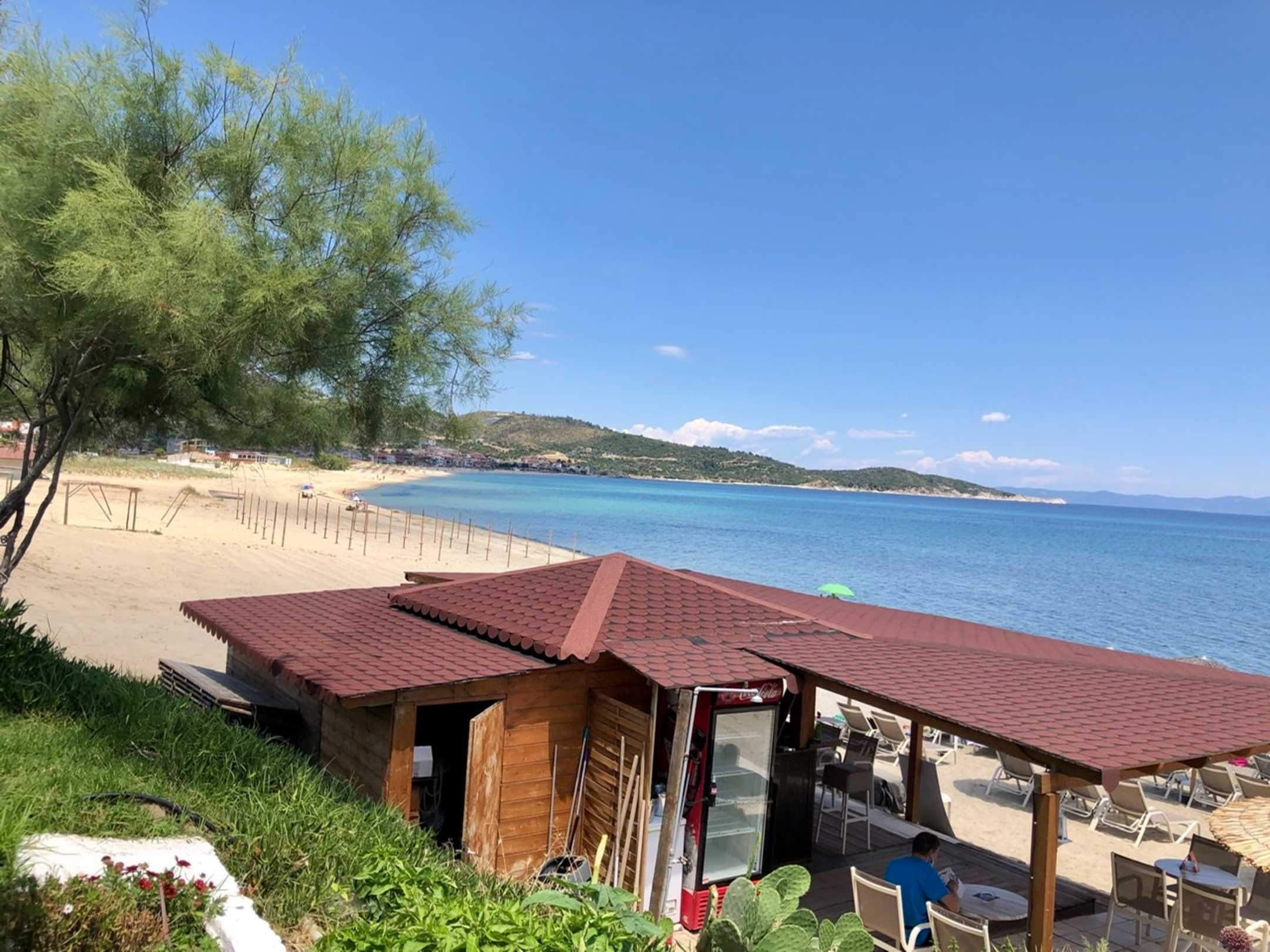 Blick auf die Bucht von Sarti aus der Paradise Bar