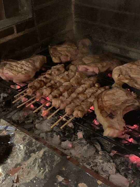 Griechischer Abend , Babis grillt regionalen Fleisch und Fisch.