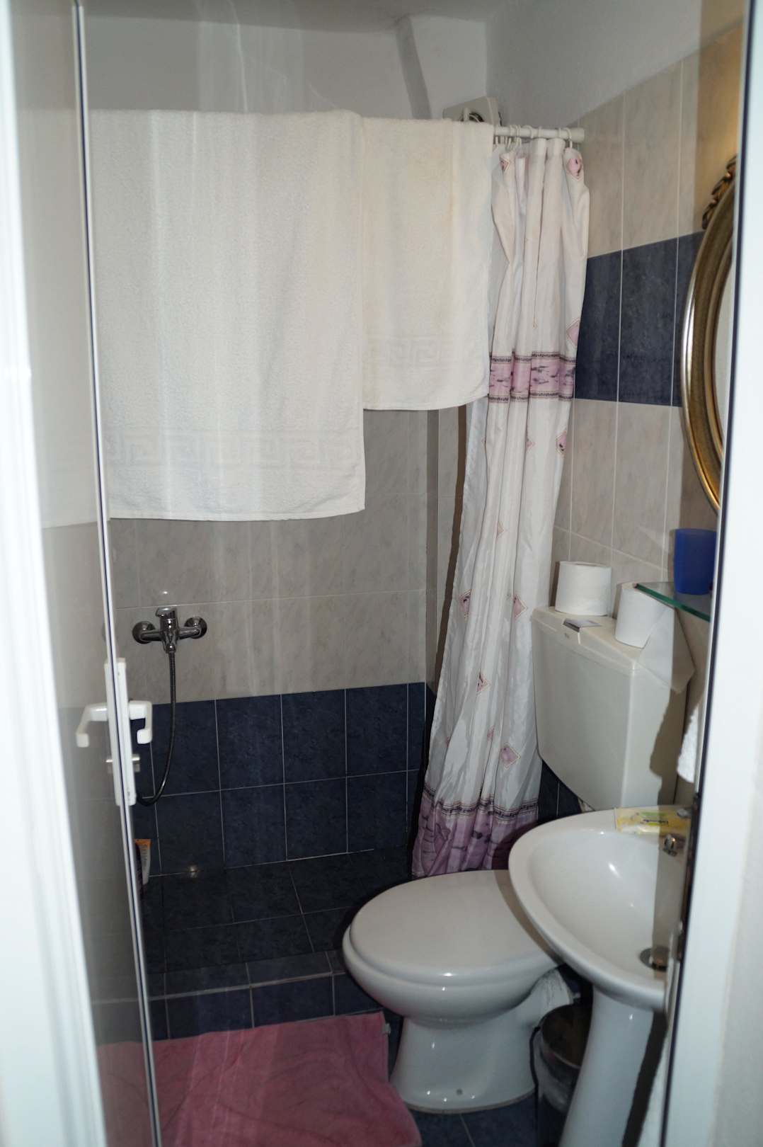 Endlich eine große Dusche, wo einem der Vorhang beim duschen nicht am Körper klebt!